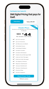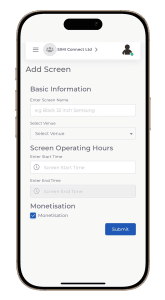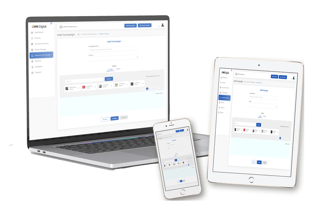 Get immediate access to you SIMI Digital Platform by signing up. This is where you manage all your screens, venues, create content, schedule your campaigns, view reports and analytics and more.